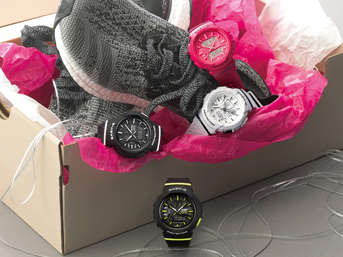 Wir möchten mit Ihnen ein kleines Sport-Fotoset von Casio teilen . Die Japaner fördern mit ihrer Uhrenproduktion aktiv den Sport [aus irgendeinem Grund mehr weiblich als männlich]. Es genügt, an die Veröffentlichung der weiblichen Serie BGA-240 [die in unserem Material besprochen wird] oder der BGS-100- Serie mit einem Schrittzähler zu erinnern , und beide waren sehr erfolgreich. Vergessen Sie nicht die digitale Serie BG-6903 mit einem praktischen Display für Sport.